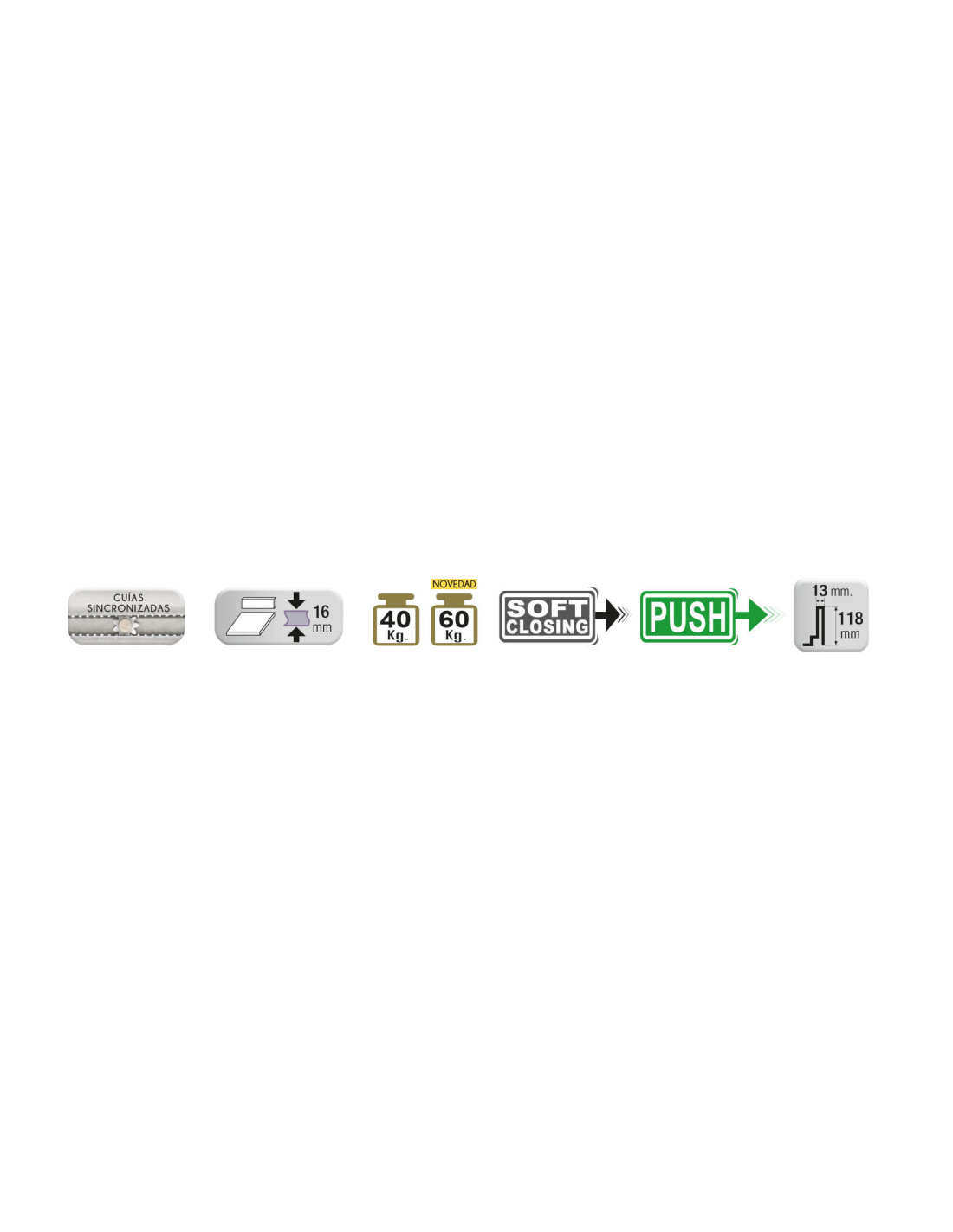 • Regulación: NEW Inclinación +5 -0 mm, Arriba y abajo ± 1,5 mm., izquierda y derecha ± 1,5 mm.