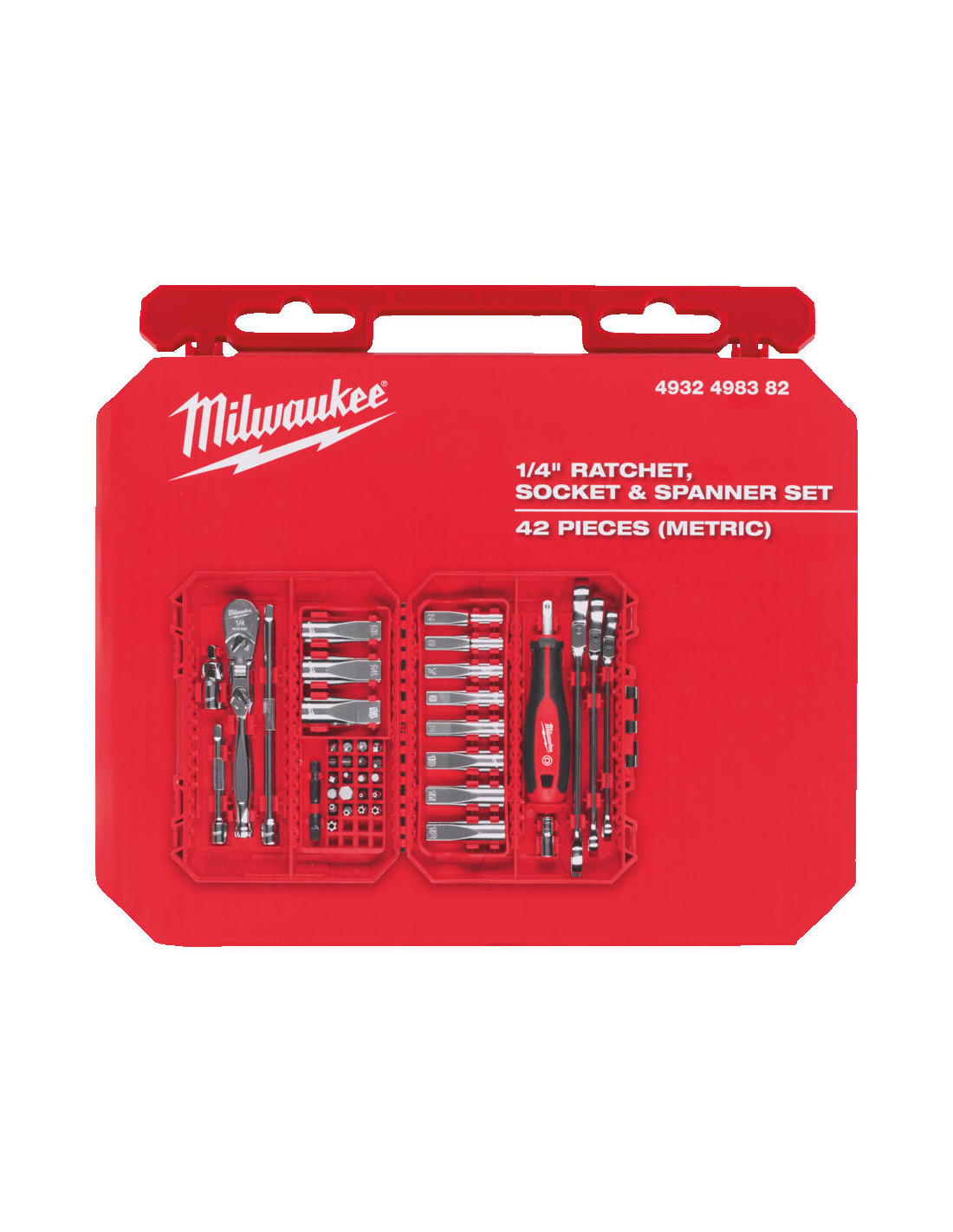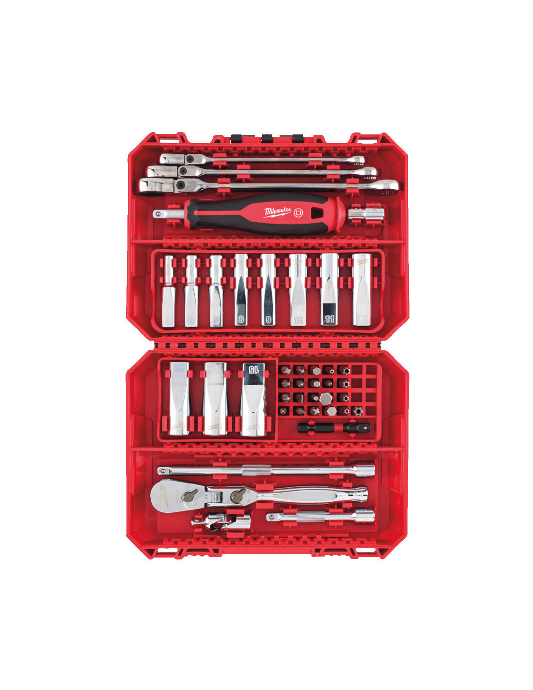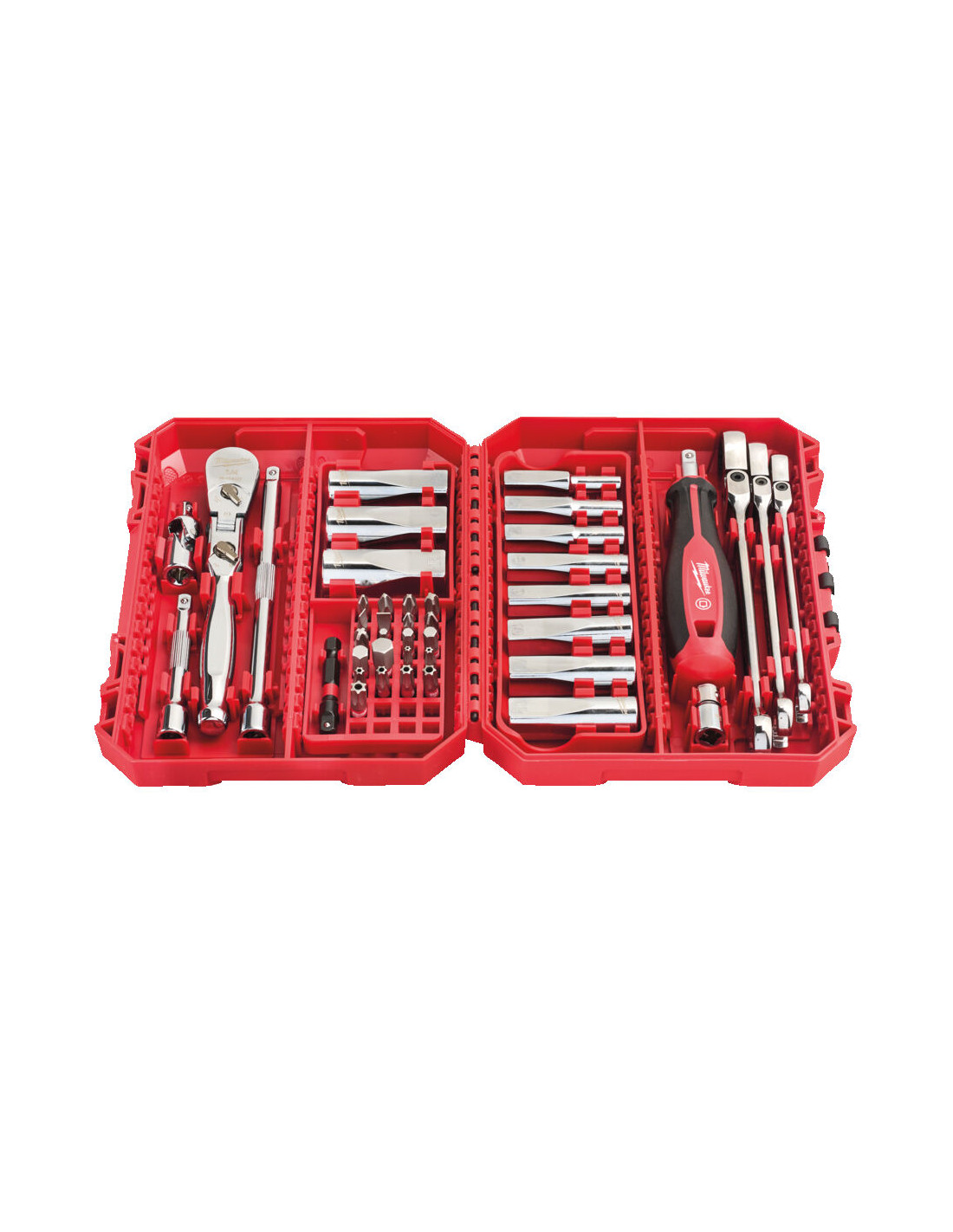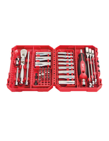 Estuche de 42 Piezas Milwaukee llaves combinadas articuladas y vasos largos de ¼″