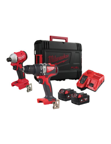 Powerpack Milwaukee M18 BLPP2A3-502X Taladro Percutor M18 BLPD2 + Atornillador de Impacto M18 BLIDR