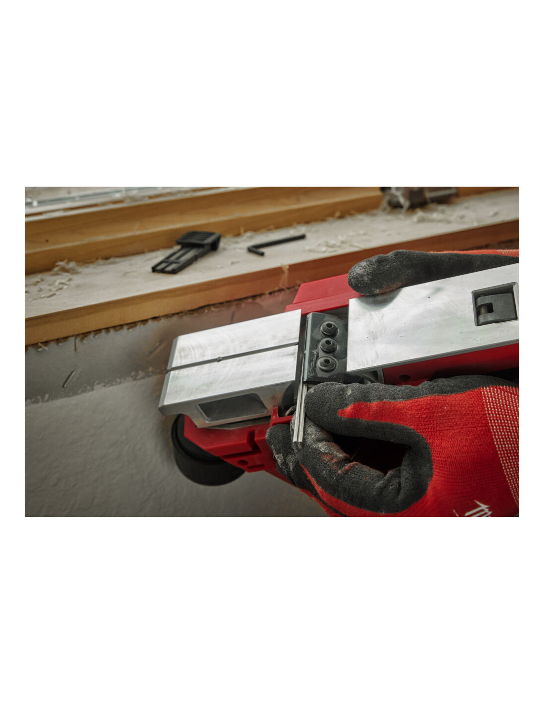 Hasta 60m de cepillado continuo a 2mm de profundidad en madera de roble con una carga de batería M12 B4.