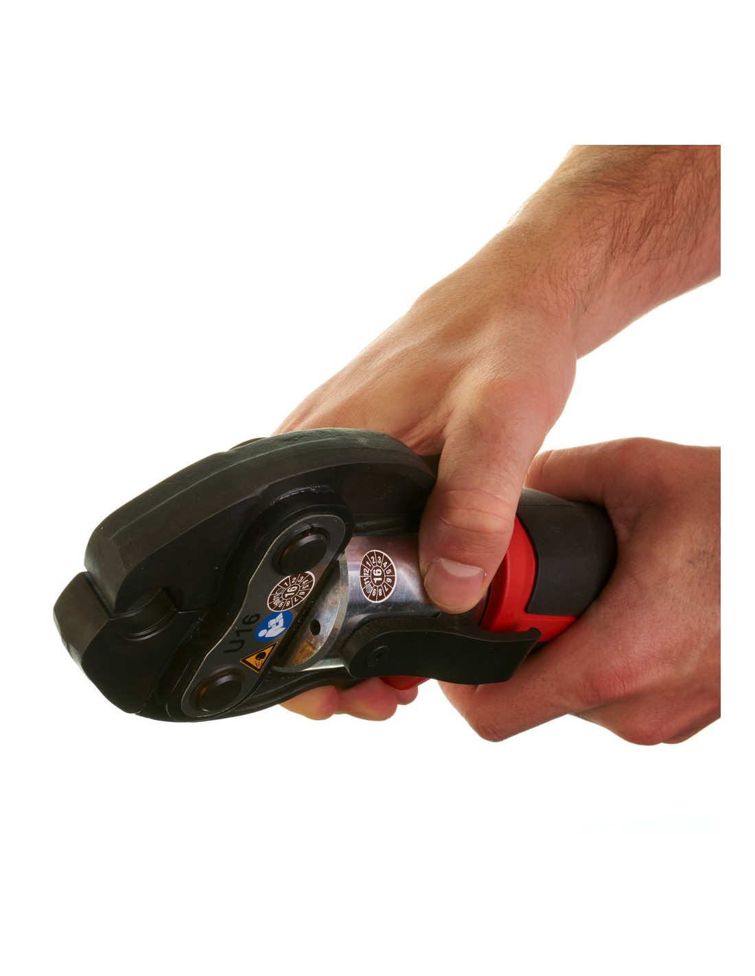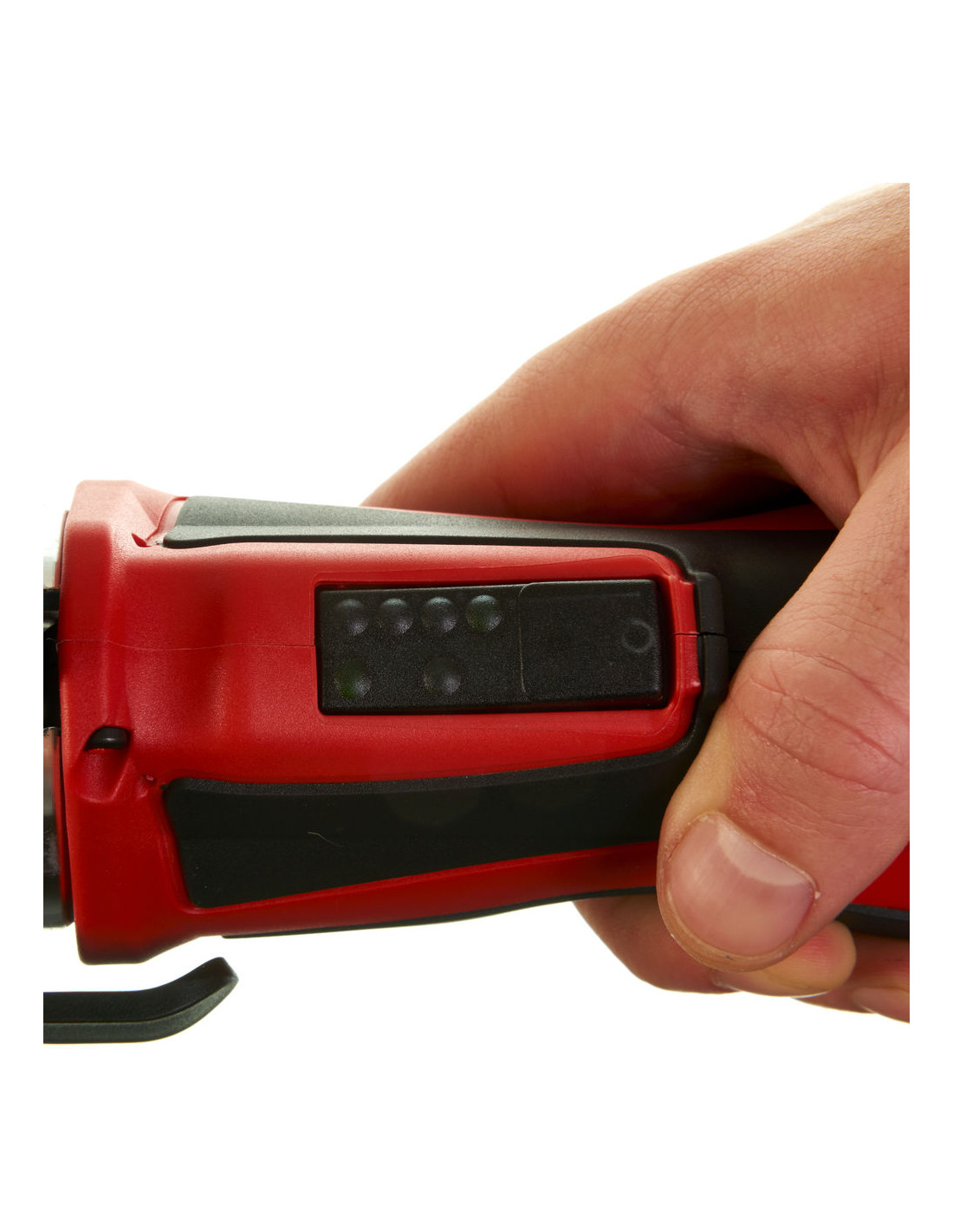 - Comunicación batería-herramienta: el prensado no comienza si no existe suficiente carga de batería para completar el prensado. Una comprobación del nivel de batería previo al prensado asegura que existe suficiente carga para completar cada prensado