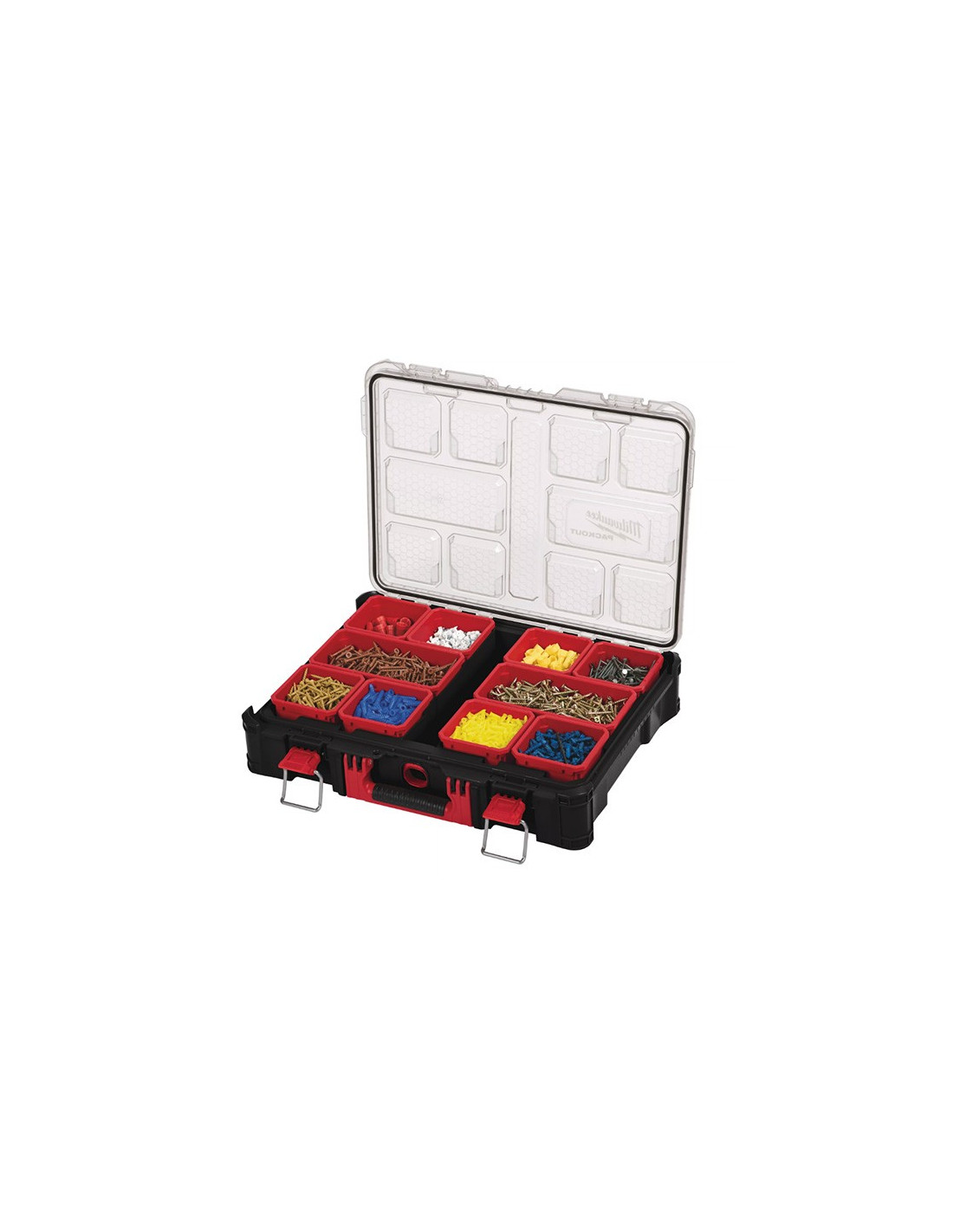 Este conjunto organizador completo de la gama Packout de Milwaukee esta compuesto por: